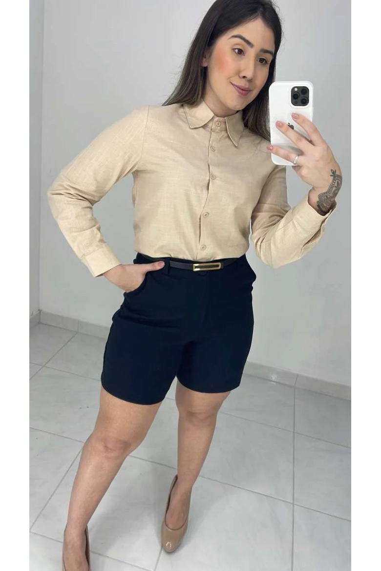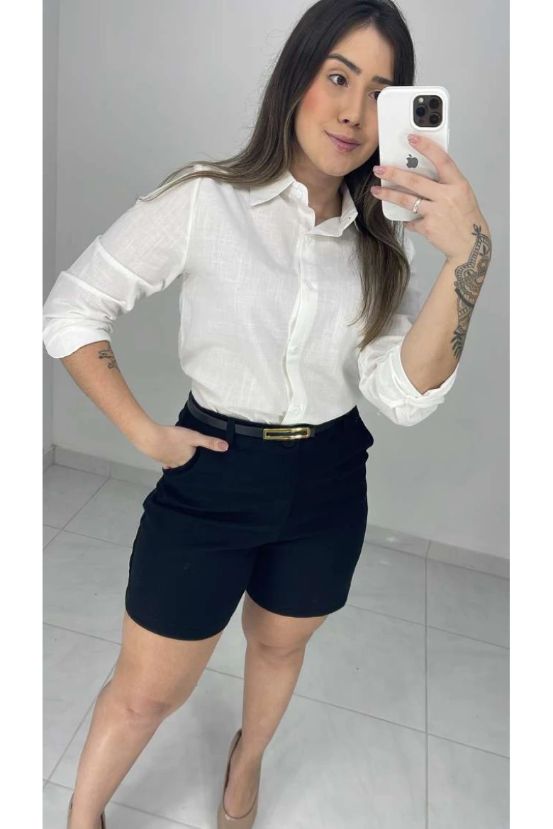 SHORTS DE LINHO C/ CINTO COURO SINTETICO