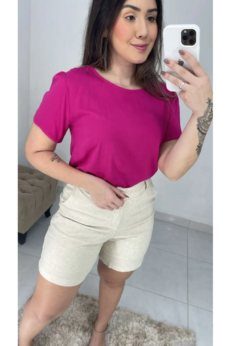 Esta blusa confeccionada em viscolinho com elastano oferece um equilíbrio perfeito entre elegância e conforto. O busto arredondado proporciona um caimento suave e clássico, valorizando a silhueta de maneira discreta. As mangas curtas adicionam frescor e leveza ao design, tornando a peça ideal para o dia a dia.