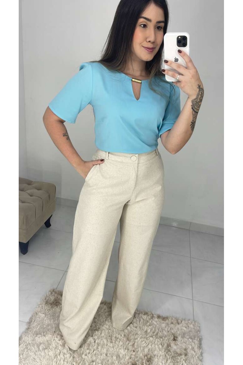 Blusa Viscose C/ Gota E Metal - Azul claro