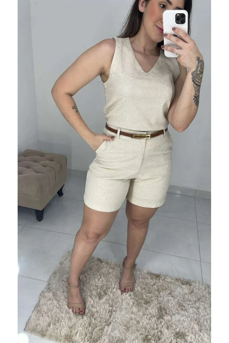 New Regata De Linho Decote V - Natural